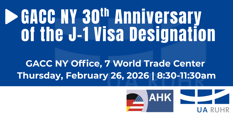 UA Ruhr will participate in the 30th Anniversary of the J-1 Visa Designation, hosted by the German American Chamber of Commerce New York (GACC NY) in New York City. The event celebrates three decades of the J-1 visa program and its vital role in fostering transatlantic mobility, workforce development, and international talent exchange between Germany and the United States.