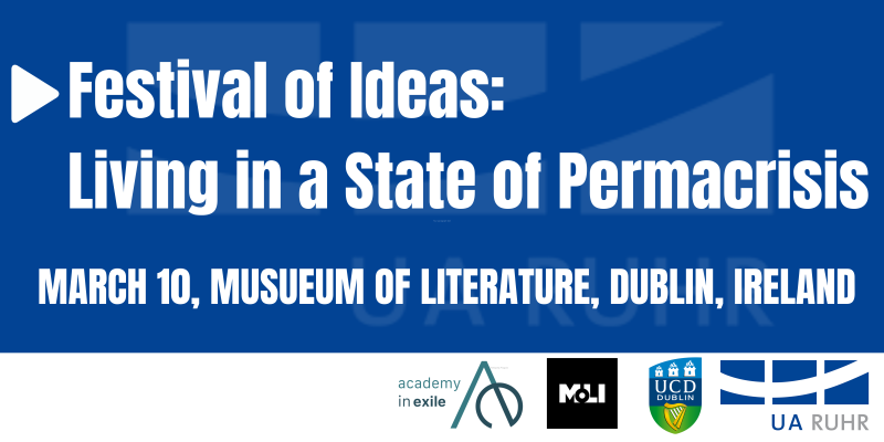 The Festival of Ideas: Living in a State of Permacrisis is a one-day public humanities festival exploring how societies, scholars, and artists respond to interconnected global crises and to permacrisis as a persistent condition shaping contemporary life.
